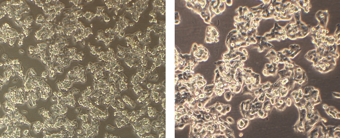 3.貼壁慢、漂浮細(xì)胞多:與Hep G2一樣,HepG2 2.2.15復(fù)蘇/傳代后需要2-3天的時(shí)間才能完全貼壁伸展開(kāi),建議在此期間不要挪動(dòng)細(xì)胞,讓細(xì)胞充分貼壁后再進(jìn)行觀察。