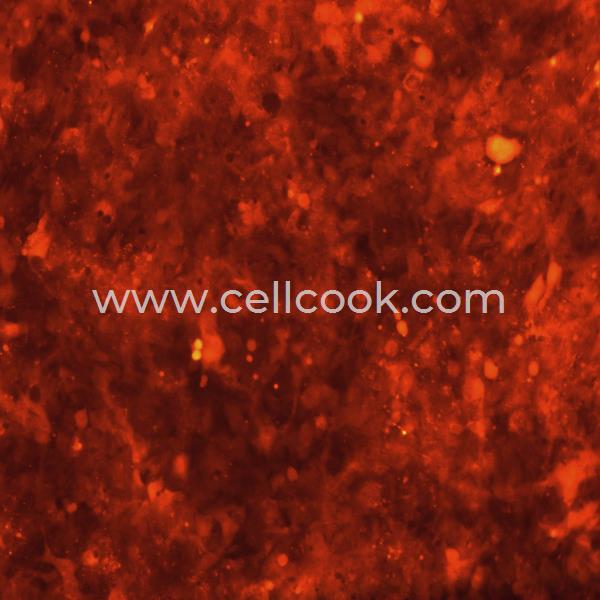 該細(xì)胞由轉(zhuǎn)染SV40的成人原代心室細(xì)胞及尿苷缺陷型、去除線粒體DNA的人纖維細(xì)胞融合后分離建系。表達(dá)SV40大T抗原、βMHC和CX-43。