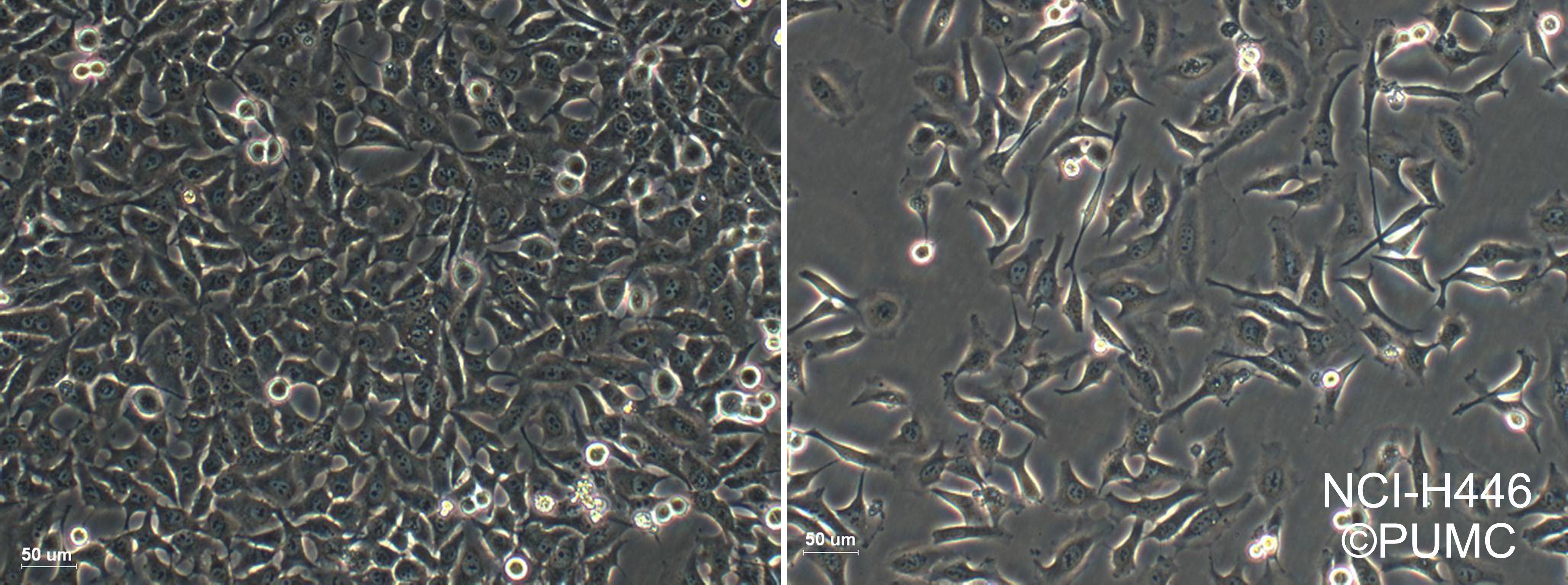該細胞是1982年由Carney D和Gazdar AF等從一位小細胞肺癌患者的胸腔積液中建立的。細胞的原始形態(tài)并不具有小細胞肺癌特征。這個細胞株是小細胞肺癌的生化和形態(tài)學(xué)上的變種,表達神經(jīng)元特有的烯醇酶和腦型肌酸激酶同工酶;左旋多巴脫羧酶、蠶素、抗利尿激素、催產(chǎn)素或胃泌激素釋放肽未達到可檢測水平。與正常細胞相比,該細胞c-myc DNA序列擴增約20倍,RNA增加15倍。最初傳代培養(yǎng)基用含有5%FBS的RPMI1640,另外添加10 nM氫化可的松、0.005 mg/ml胰島素、0.01 mg/ml轉(zhuǎn)鐵
