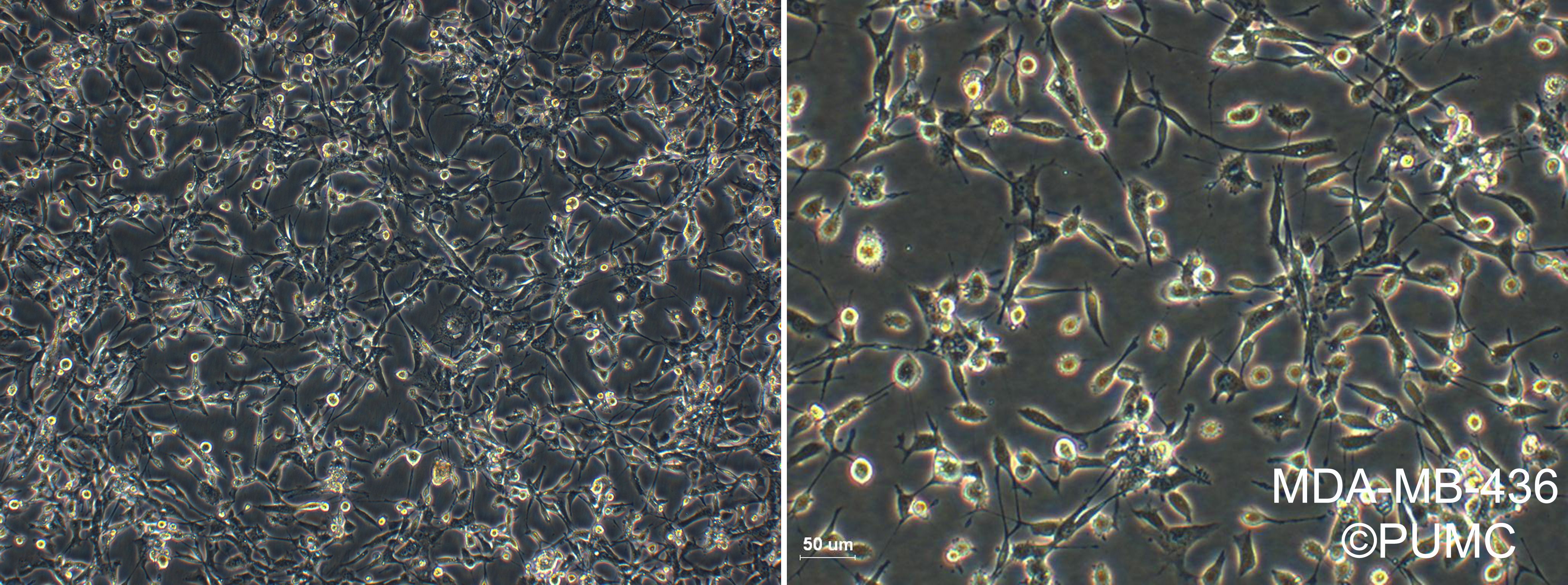 該細胞源于一名43歲患有乳腺腺癌女性的胸腔積液。細胞呈多形性,大多數(shù)細胞在間接免疫熒光染色時呈現(xiàn)與抗微管抗體的強烈反應(yīng)。