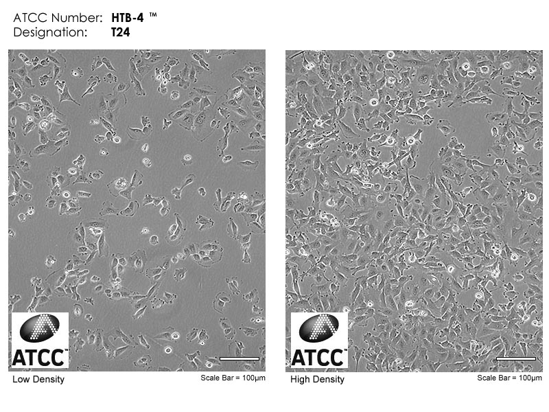 該細胞源自一位81歲白人女性患者的膀胱移行細胞癌組織;來源于移行細胞癌病人的白血病和血漿對T24和相關(guān)細胞株有細胞毒性;倍增時間為19小時;含ras (H-ras)癌基因,表達腫瘤特有抗原。