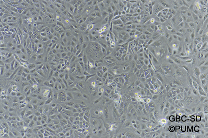 GBC-SD細(xì)胞株是王展明等2000年從一位61歲的男性低分化膽囊癌患者中建立的。細(xì)胞的形狀有多邊形、紡錘形和正方形。分泌CEA和CA19-9。倍增時(shí)間大約為21.4小時(shí)??梢浦驳铰闶蟆I傻哪[瘤與原發(fā)腫瘤相似。