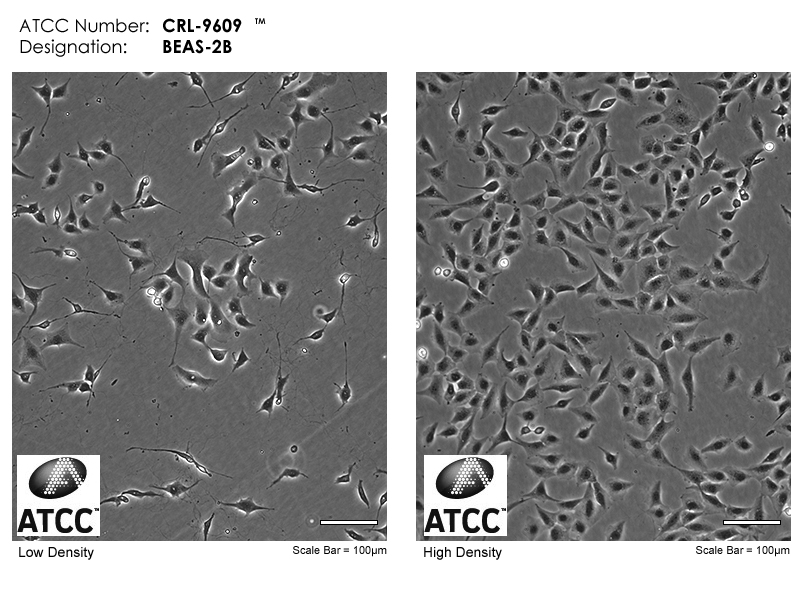 從一位非癌個(gè)體的正常人支氣管上皮病理切片分離出上皮細(xì)胞。 這些細(xì)胞用腺病毒12-SV40病毒雜交病毒感染并克隆。 BEAS-2B細(xì)胞保留了對(duì)血清反應(yīng)進(jìn)行鱗狀分化的能力,并有用于篩選誘導(dǎo)或影響分化及致癌的化學(xué)或生物制劑。 細(xì)胞角蛋白及SV40抗原染色陽性。