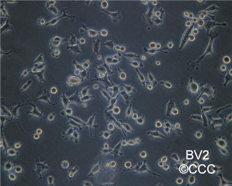 源于C57BL/6小鼠小膠質(zhì)細(xì)胞,表達(dá)核v-myc、染色體v-raf 癌基因,表面表達(dá)env gp70抗原,在形態(tài)學(xué)、表型及功能上有吞噬細(xì)胞的特征。