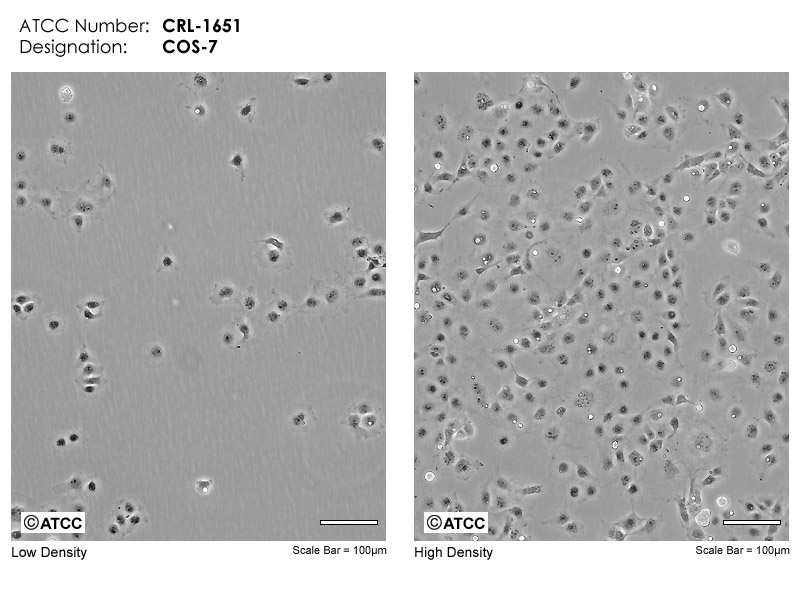 此細(xì)胞株源自CV-1細(xì)胞株,經(jīng)轉(zhuǎn)染起始點(diǎn)缺失的SV40病毒突變體得到;編碼表達(dá)野生型T抗原,所以該細(xì)胞適合作為需要SV40 T抗原表達(dá)的載體的轉(zhuǎn)染宿主。該細(xì)胞表達(dá)T抗原,允許SV40病毒的溶解性生長(zhǎng),支持40℃時(shí)溫度敏感性A209病毒的復(fù)制,支持起始區(qū)域缺陷的SV40突變體的復(fù)制。因含有SV40病毒的DNA序列,該細(xì)胞需要在2級(jí)生物安全柜中操作。